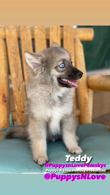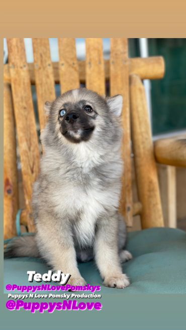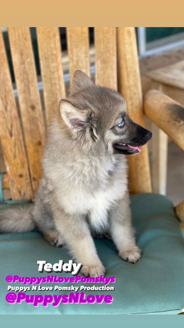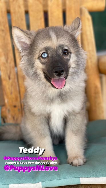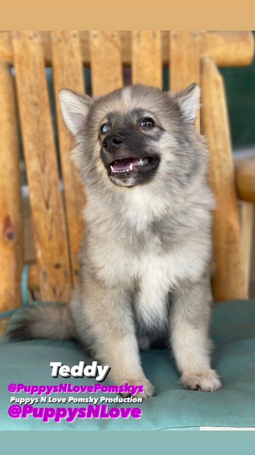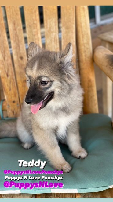 Cola Bear of Puppys N Love is an amazing plush coat F1b Pomsky with great composure and disposition. Cola Bear weighs 19 lbs and has an amazing personality and temperament.